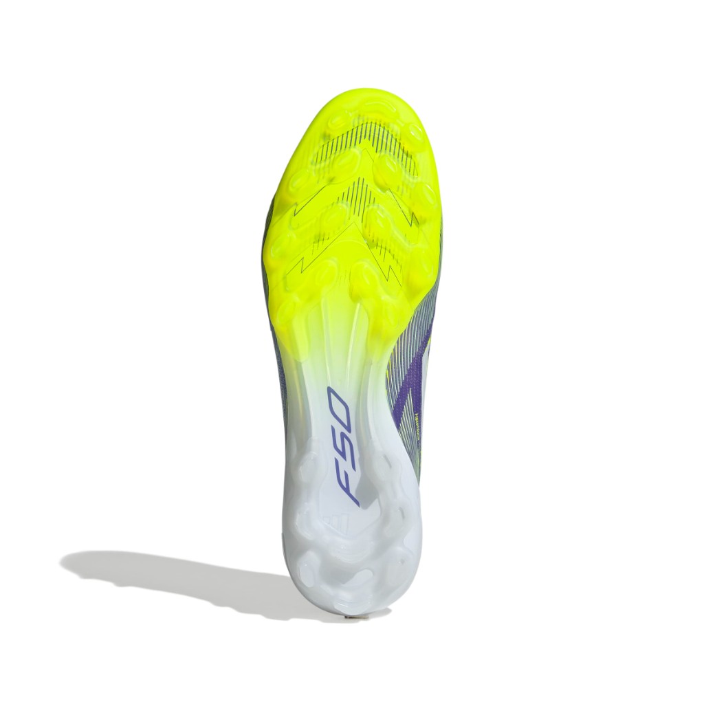Siente la adrenalina con las botas adidas F50, con diseño imparable. Esta bota de fútbol Elite presenta un empeine Fibertouch fino, una lengüeta envolvente con ajuste de compresión para una mayor sujeción, y una textura Sprintweb 3D que mantiene el balón pegado al pie mientras driblas a tus rivales. La suela ligera, diseñada para superficies de césped artificial de 2.ª y 3.ª generación, sigue tu ritmo imbatible.