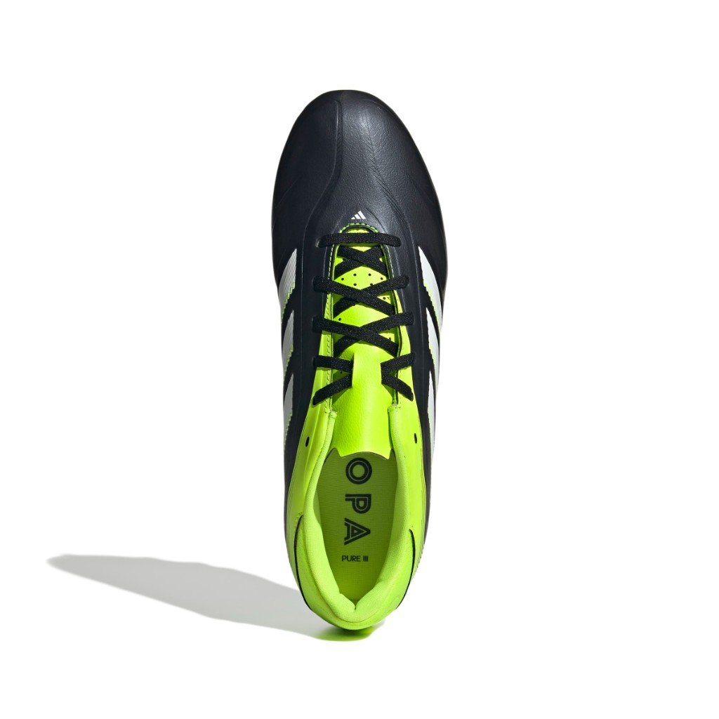 Perfecciona tu juego con la bota Copa Pure 3 y consigue una conexión inquebrantable con el balón. Esta bota adidas Club tiene un suave empeine de material sintético y un estampado en relieve en el antepié para un mejor control. La suela tiene un excelente agarre en césped natural seco y artificial, para que juegues a fútbol con clase.