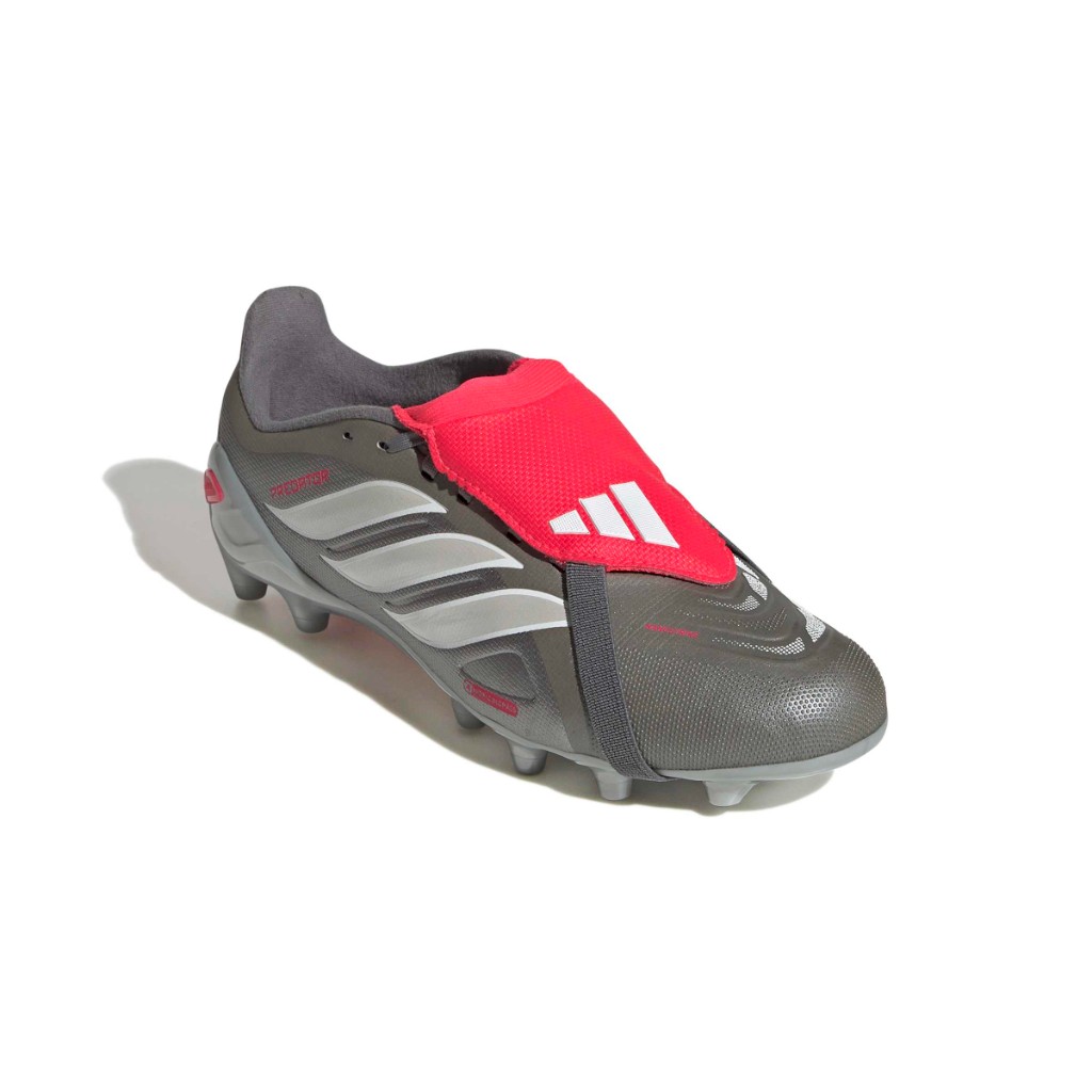 Conoce las botas de fútbol Predator League con lengüeta replegable para césped artificial.