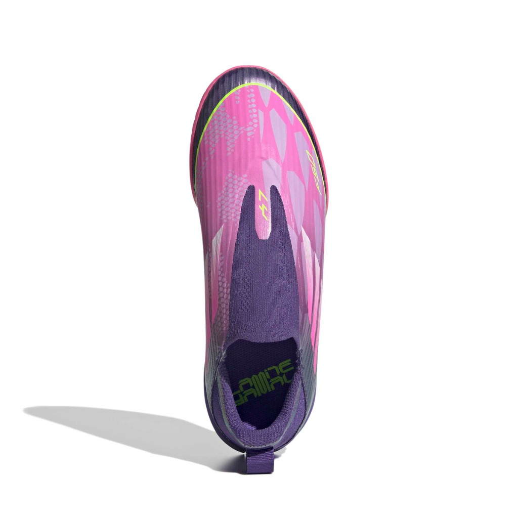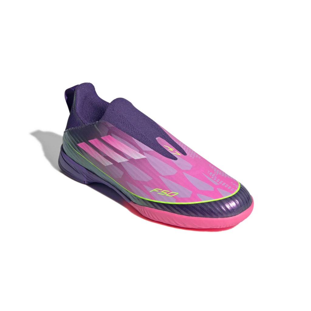 La bota de fútbol en pista cubierta sin cordones F50 League está diseñada para que los jóvenes futbolistas desaten toda su velocidad.