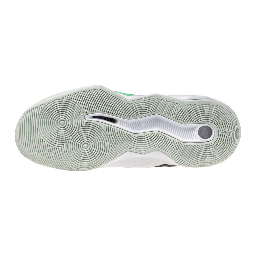Utiliza MIZUNO ENERZY NXT en el talón para mejorar la amortiguación y el retorno de energía. También persigue la estabilidad durante el juego con el diseño de su suela exterior, la construcción en voladizo y el uso de MIZUNO WAVE. Amortiguación -MIZUNO ENERZY NXT está equipado en el talón para proporcionar amortiguación y retorno de energía. Búsqueda de la estabilidad. La suela exterior en la parte interior del mediopié está diseñada con un área de contacto ampliada, proporcionando estabilidad adicional durante el juego. Ajuste cómodo alrededor del pie. Se utiliza una nueva horma, junto con una construcción de medio botín, que facilita el ajuste de los cordones y consigue un ajuste ceñido y ceñido al pie. La apertura del zapato está diseñada con un acolchado más grueso para una sensación suave y acolchada. Mizuno Wave equilibra la estabilidad y la amortiguación en el talón. Estructura Outrigger para mayor estabilidad. La suela se extiende hacia fuera en la zona del dedo meñique, ofreciendo mayor sujeción y estabilidad.