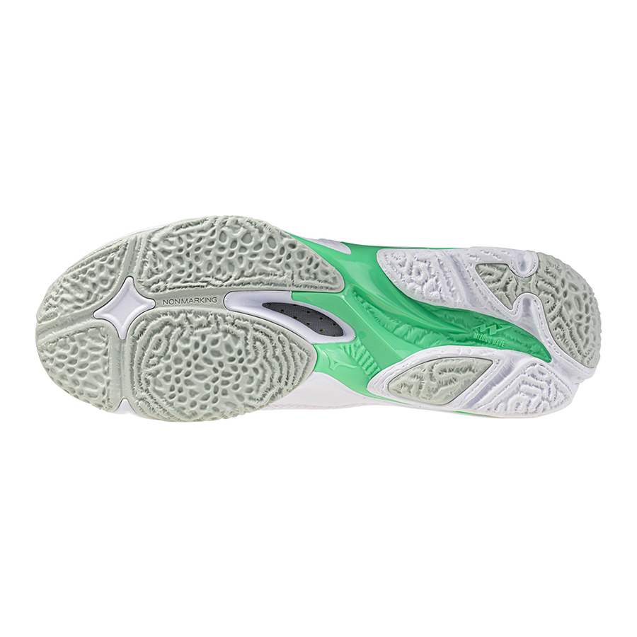Disfruta de una amortiguación suave y un alto retorno de energía con MIZUNO ENERZY NEXT y SOCKLINER en el antepié, además de la entresuela MIZUNO ENERZY. Saltarás más rápido y más alto que nunca con la sujeción de la nueva MIZUNO WAVE y la estructura redondeada del talón. Todas estas características se consiguen con un peso notablemente ligero gracias a la malla de monofilamento. MIZUNO ENERZY NXT/MIZUNO ENERZY SOCKLINER Disfruta de una amortiguación suave y un alto retorno de energía que notarás gracias a que MIZUNO ENERZY NXT y SOCKLINER se encuentran presentes en el antepié. MIZUNO WAVE Esta zapatilla incorpora la nueva estructura WAVE, desarrollada para proporcionar la máxima sujeción en los saltos. La placa se prolonga a la parte exterior del antepié para proporcionar el máximo apoyo, ofreciendo estabilidad al dar pasos y retorno de la energía al saltar. Envoltura de ojales Dyna La estructura de ojales con grandes aberturas ofrece un ajuste que da la sensación de envolver todo el pie. En busca de un peso ligero Se utiliza malla de monofilamento para conseguir un peso ligero. La malla transparente proporciona un aspecto ligero y una mayor transpirabilidad. Estructura redondeada del talón Favorece los movimientos de salto que parten del talón y mejora la estabilidad al dar pasos.