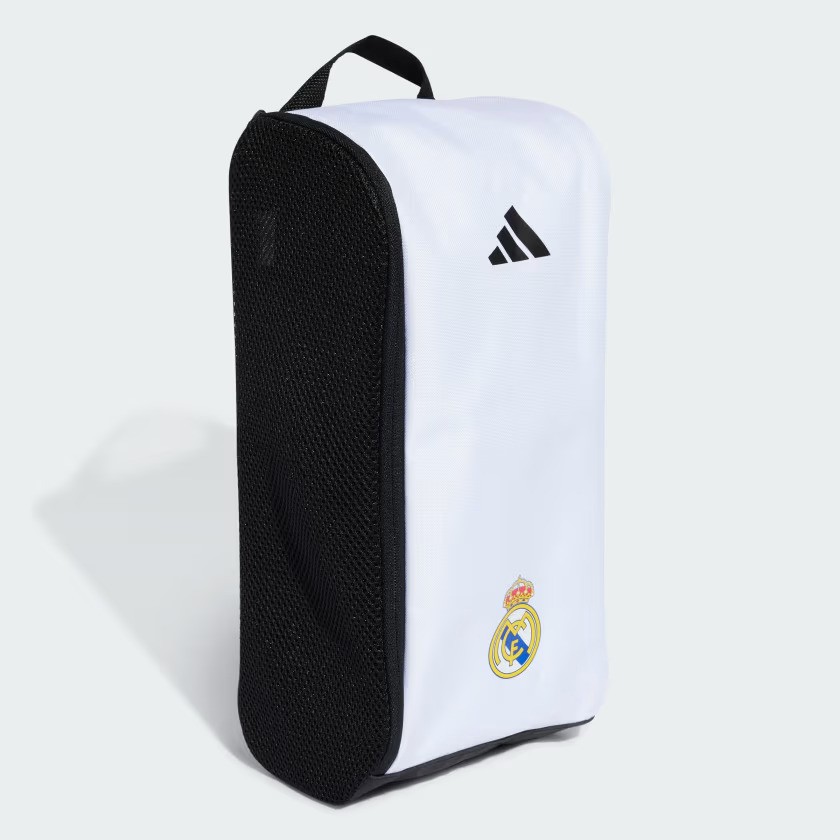 Esta bolsa adidas presenta una inserción de malla que favorece la ventilación y el escudo del Real Madrid como muestra de tu lealtad incondicional. Se ha confeccionado en un tejido técnico muy resistente al desgaste que te permite transportar tu calzado de forma segura.