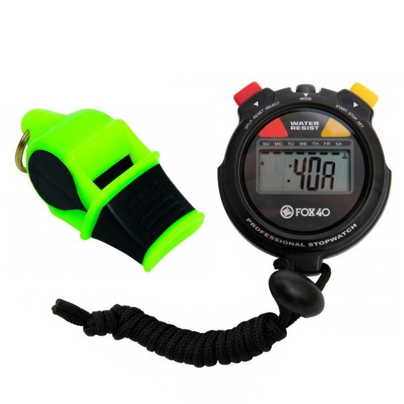 Pack de un potente silbato Fox 40 Sonik Blast CMG y un cronómetro Fox 40 con precisión digital, resistente al agua y a los golpes.