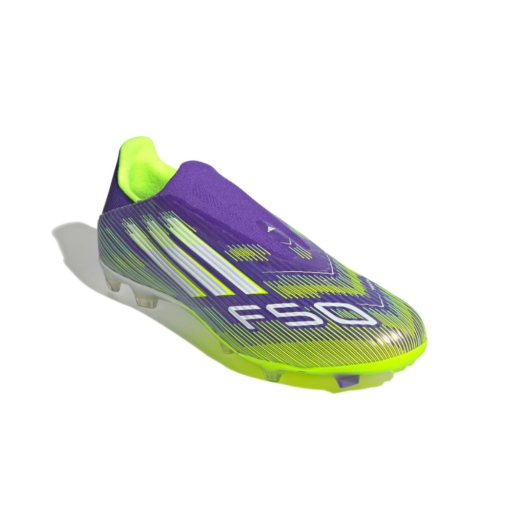 Siente la adrenalina con las botas adidas F50, con diseño imparable. Esta bota de fútbol League te ofrece una sujeción imbatible y un mejor contacto con el balón gracias a su diseño sin cordones que combina un empeine Fiberskin con un llamativo estampado Sprintgrid y un panel de media caña. La suela Sprintplate ligera te ayuda a alcanzar una velocidad explosiva en todo tipo de superficies.