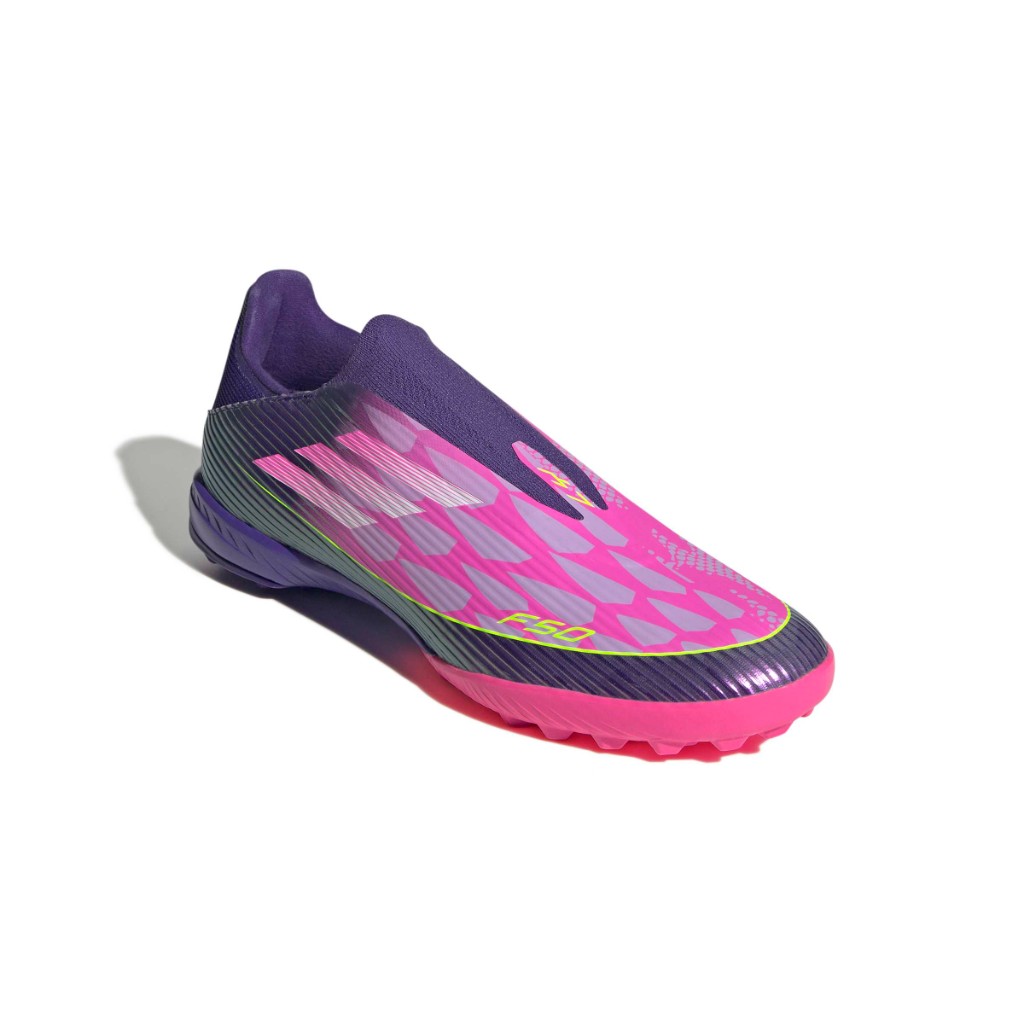 Siente la adrenalina con las botas adidas F50: un diseño imparable. Esta bota de fútbol League te ofrece una sujeción imbatible y un mejor contacto con el balón gracias a su diseño sin cordones que combina un empeine Fiberskin con un llamativo estampado Sprintgrid y un panel de media caña. La mediasuela de EVA y la suela de goma con tacos se unen para garantizar la comodidad. Los detalles de Lamine Yamal demuestran que aprendes de los mejores.