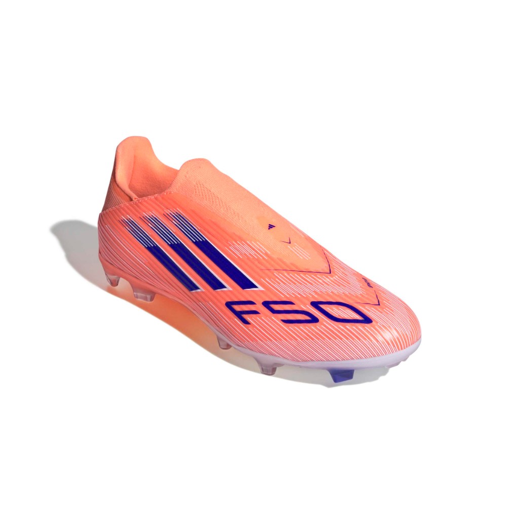 Siente la adrenalina con las botas adidas F50, con diseño imparable. Esta bota de fútbol League te ofrece una sujeción imbatible y un mejor contacto con el balón gracias a su diseño sin cordones que combina un empeine Fiberskin con un llamativo estampado Sprintgrid y un panel de media caña. La suela Sprintplate ligera te ayuda a alcanzar una velocidad explosiva en todo tipo de superficies.