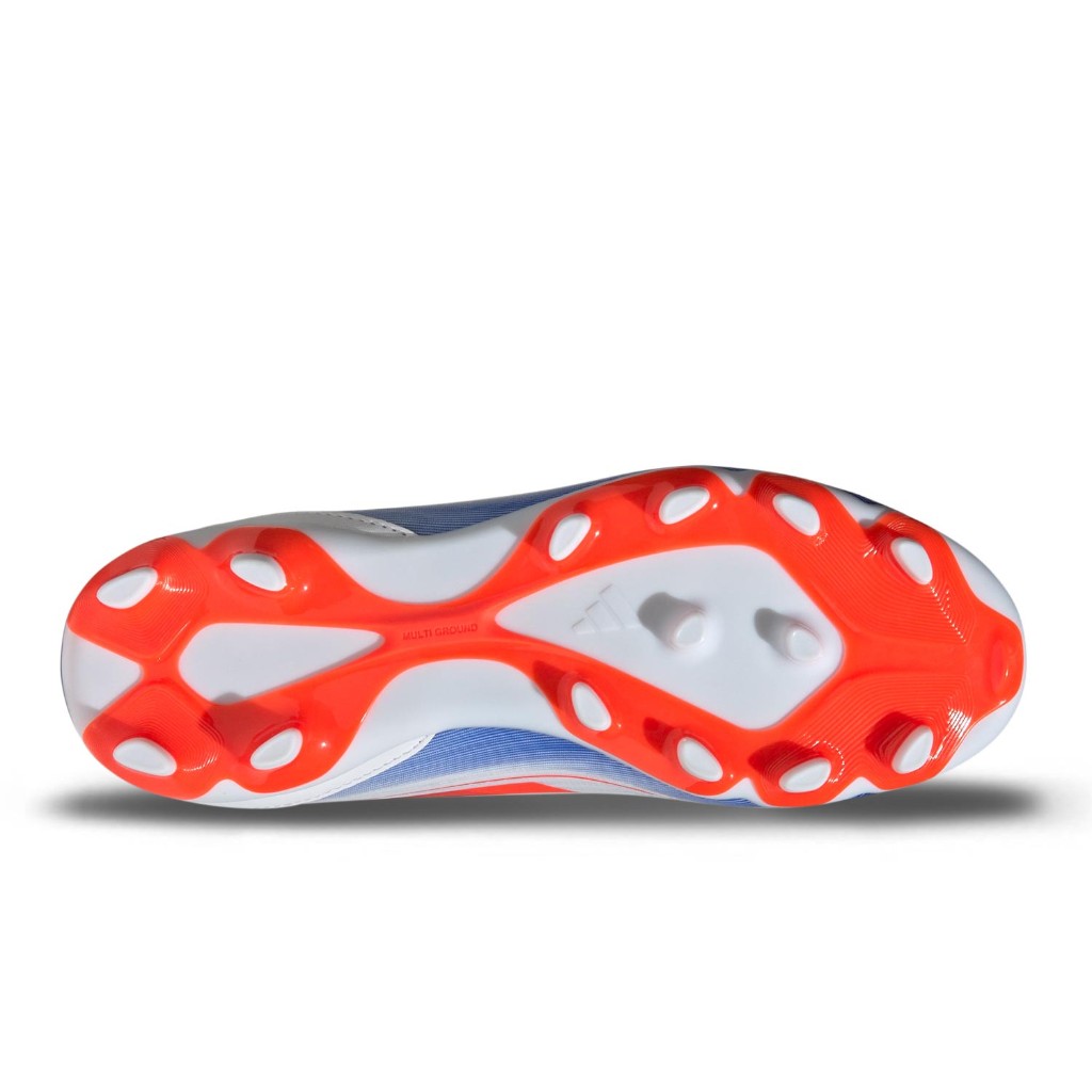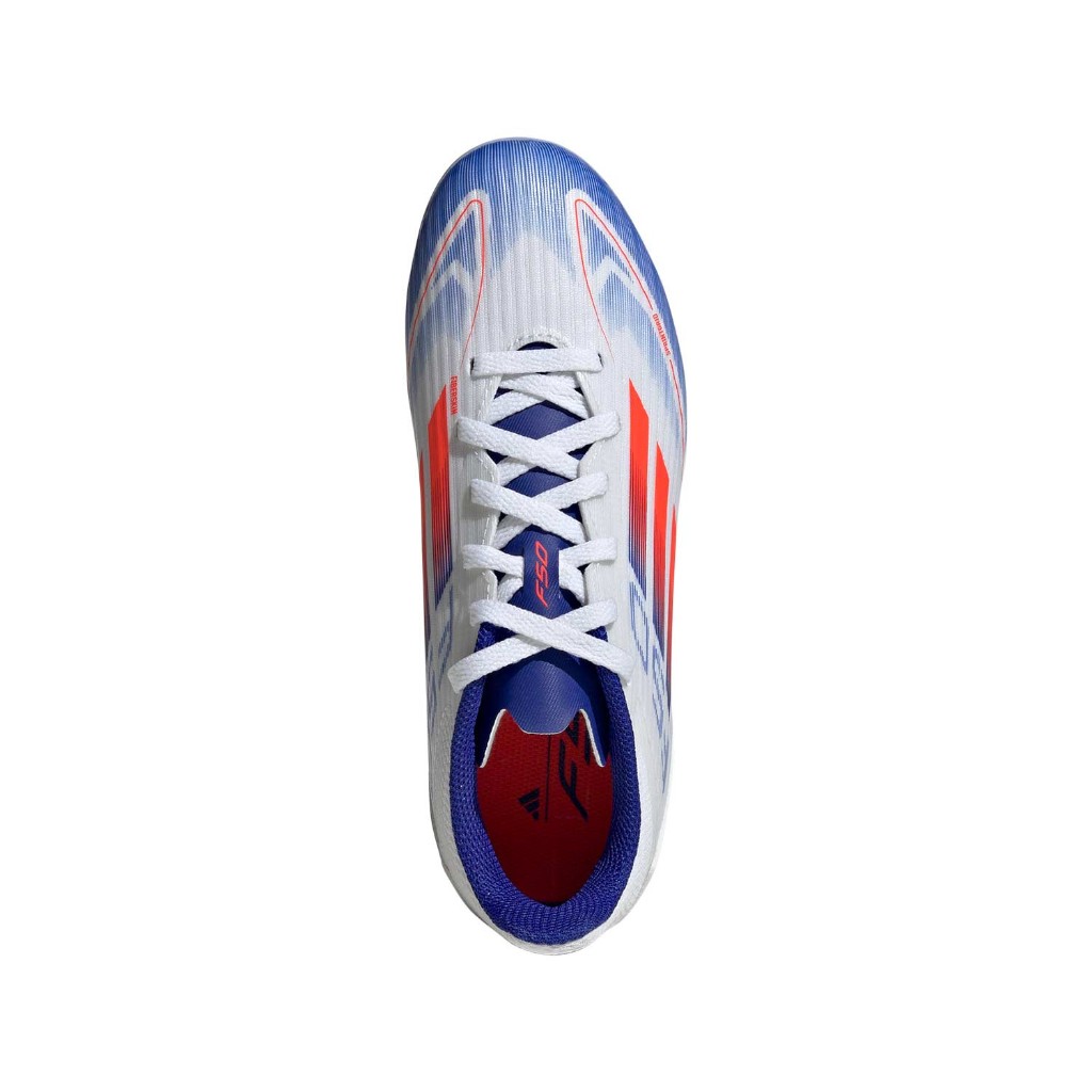 Estas zapatillas de fútbol adidas League para niños y adolescentes están equipadas con una lengüeta perforada para una refrigeración óptima del aire, el material superior de piel de fibra y el estampado Sprint Grid en la zona del antepié. La suela exterior especial también permite una excelente aceleración en campos de césped artificial, duros y de arcilla de nueva generación.