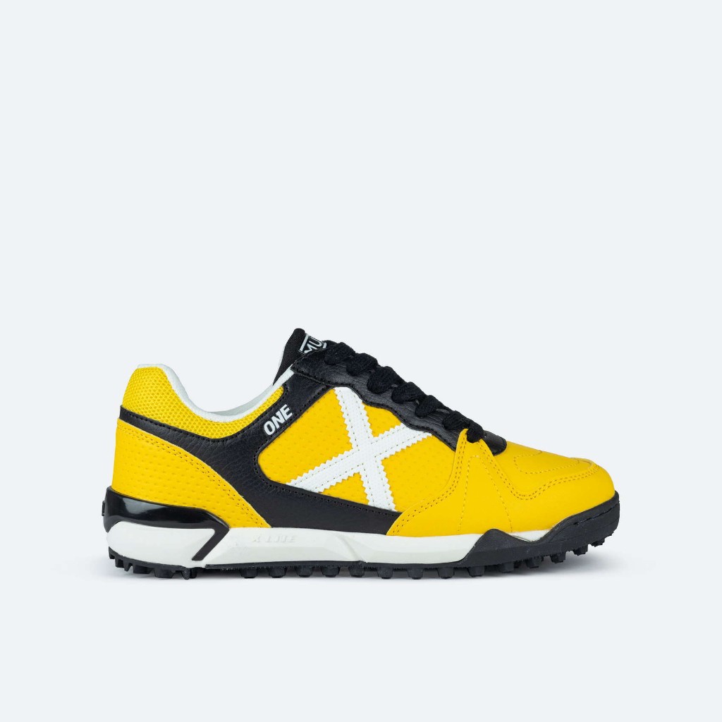 La ONE TURF es la zapatilla pensada para fútbol outdoor y diseñada para adaptarse a los pies de los más pequeños, fabricada con base de rejilla y refuerzos de material sintético.