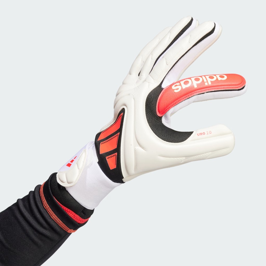Con un estilo clásico y un diseño de alto rendimiento, combinan un dorso de látex y malla transpirable con una palma URG 2.0 que ofrece un agarre excepcional. La correa elástica envuelve la muñeca proporcionando un ajuste cómodo y seguro, mientras que el corte negativo en los dedos te garantiza un ajuste preciso y un contacto natural con el balón.