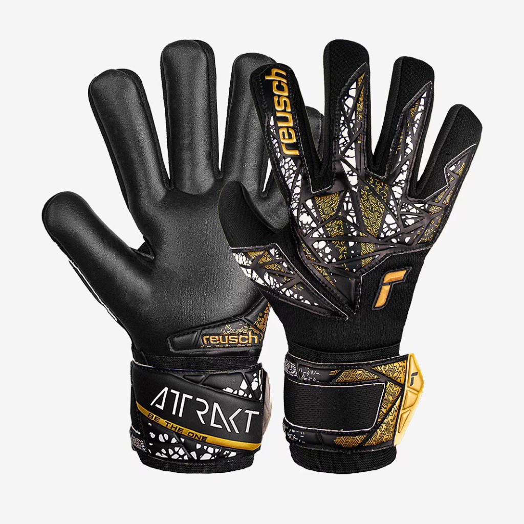 Haz despejes de élite con los guantes de portero Reusch Attrakt Silver Negative Cut Finger Support.