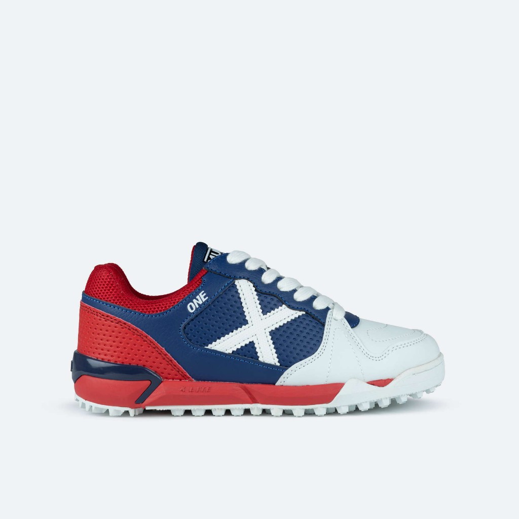 La ONE TURF es la zapatilla pensada para fútbol outdoor y diseñada para adaptarse a los pies de los más pequeños, fabricada con base de rejilla y refuerzos de material sintético.