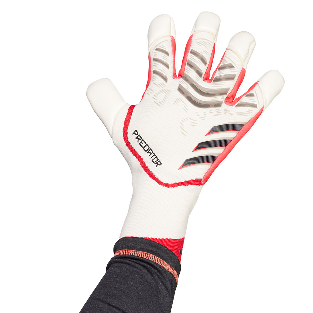 Domina la portería con los guantes de portero adidas Predator Pro Hybrid, con texturizado agresivo en el dorso para despejes enérgicos.