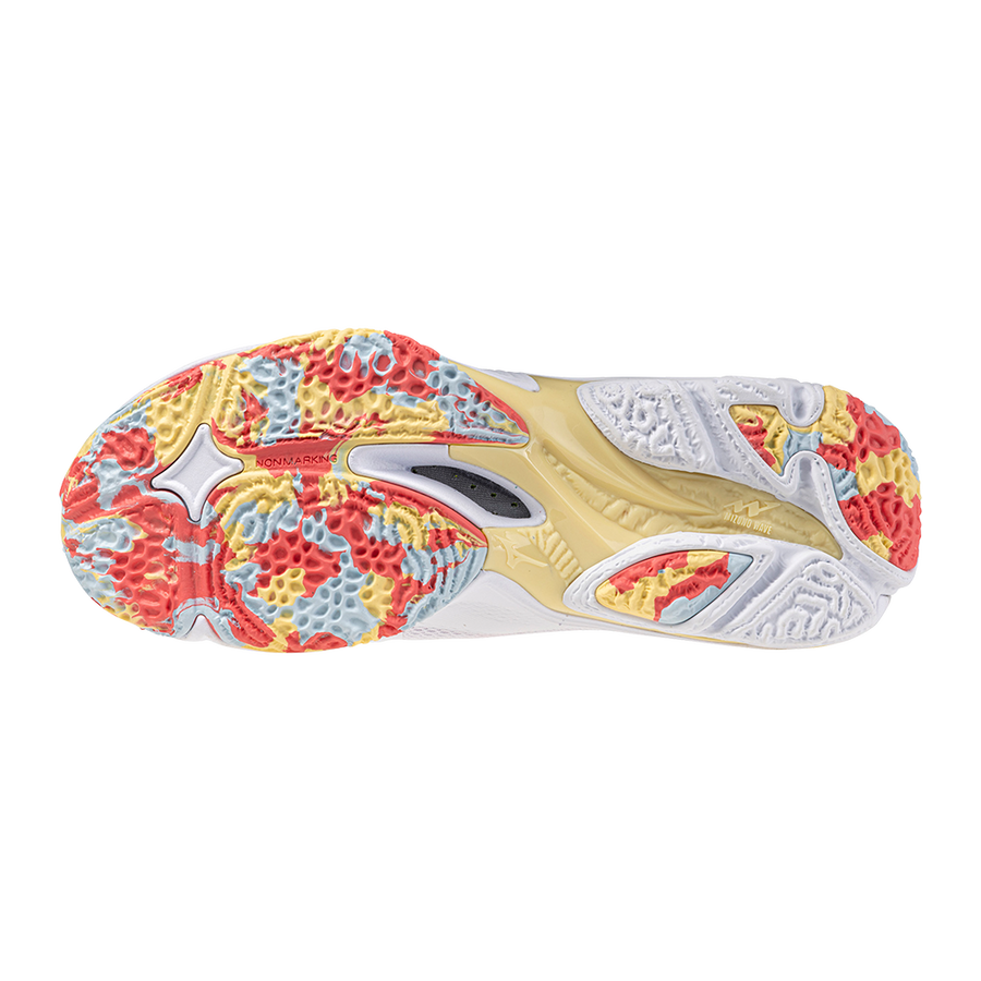 Disfruta de una amortiguación suave y un alto retorno de energía con MIZUNO ENERZY NEXT y SOCKLINER en el antepié, además de la entresuela MIZUNO ENERZY. Saltarás más rápido y más alto que nunca con la sujeción de la nueva MIZUNO WAVE y la estructura redondeada del talón. Todas estas características se consiguen con un peso notablemente ligero gracias a la malla de monofilamento. MIZUNO ENERZY NXT/MIZUNO ENERZY SOCKLINER Disfruta de una amortiguación suave y un alto retorno de energía que notarás gracias a que MIZUNO ENERZY NXT y SOCKLINER se encuentran presentes en el antepié. MIZUNO WAVE Esta zapatilla incorpora la nueva estructura WAVE, desarrollada para proporcionar la máxima sujeción en los saltos. La placa se prolonga a la parte exterior del antepié para proporcionar el máximo apoyo, ofreciendo estabilidad al dar pasos y retorno de energía al saltar. Envoltura de ojales Dyna La estructura de ojales con grandes aberturas ofrece un ajuste que da la sensación de envolver todo el pie. En busca de un peso ligero Se utiliza malla de monofilamento para conseguir un peso ligero. La malla transparente proporciona un aspecto ligero y una mayor transpirabilidad. Estructura redondeada del talón Favorece los movimientos de salto que parten del talón y mejora la estabilidad al dar pasos.